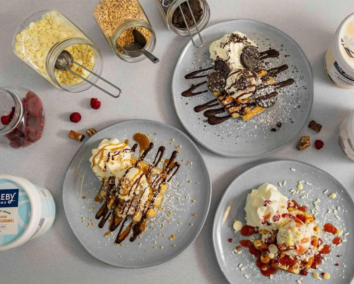 Wide range of authentic, hot, Belgian style waffles. Scoop ice cream from our friends at Appleby Farms and the full Coca-Cola range.